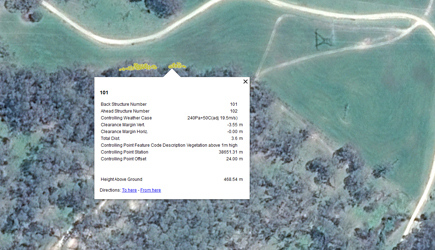 This service allows the utility to determine if there are clearance issues to ground features or aerial obstacles. All clearance violations are presented to the client in any format.
